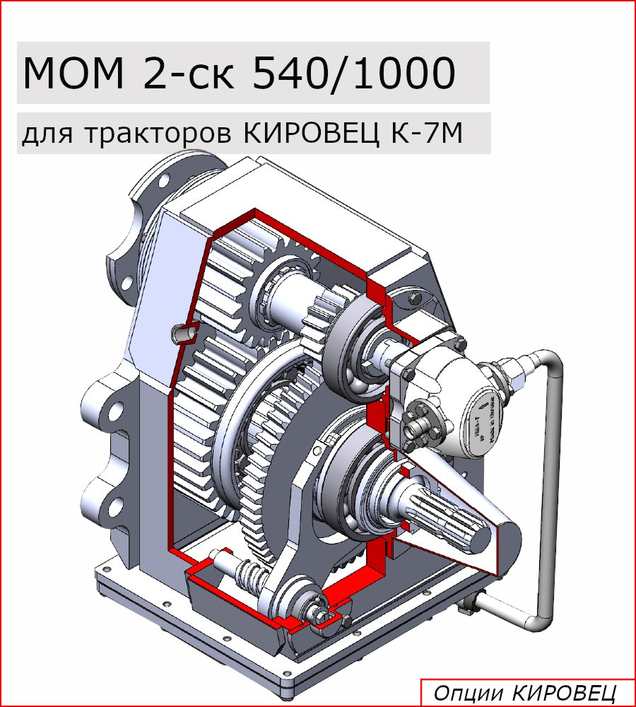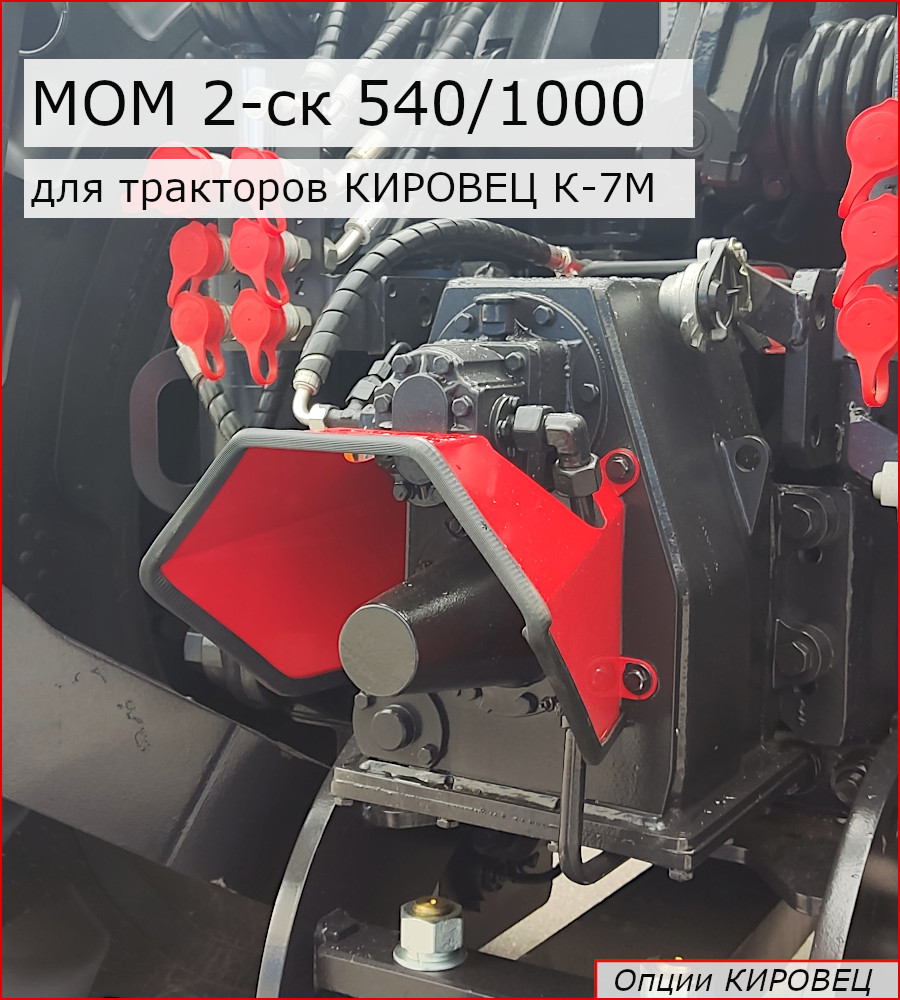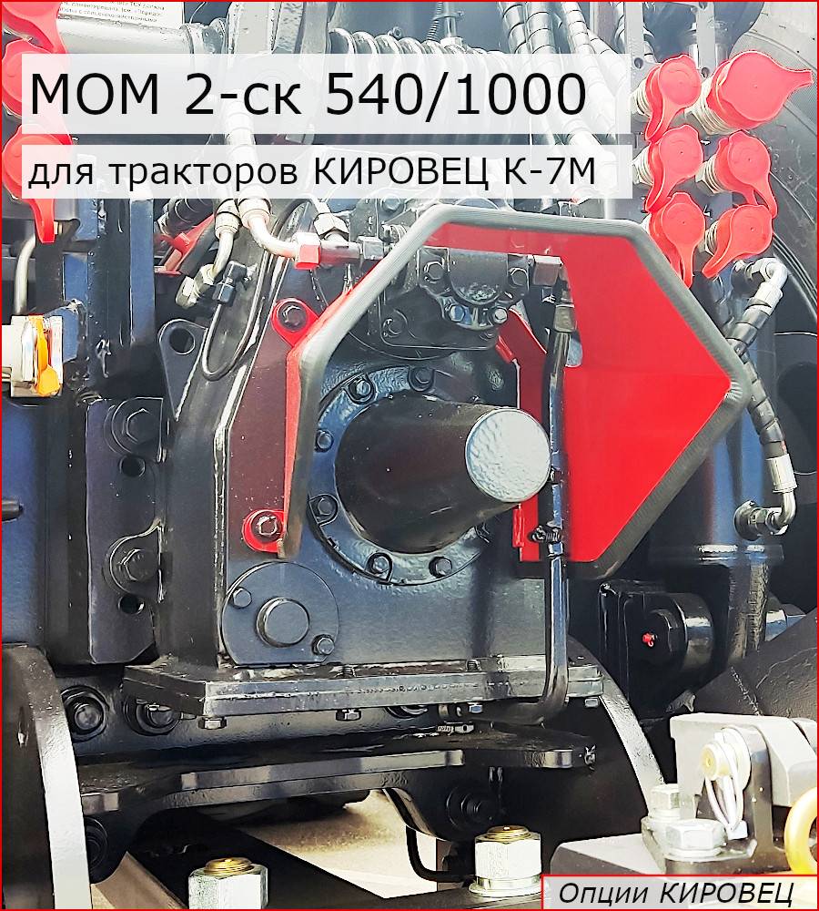 Механизм отбора мощности (МОМ) задний двухскоростной - 540 и 1000 об/мин. Независимый с клапаном плавного пуска. В состав МОМ входит сменный хвостовик тип 3 по ГОСТ-3480. Дополнительные хвостовики можно приобрести в составе опции «Комплект хвостовиков» или по отдельности. Для тракторов К-7М, выпущенных до 01.01.2025 нужен комплект МОМ с нижними тягами ЗНУ и элементами крепления ТСУ-3-К (750-50.42.000). Помощь с подбором МОМ вам окажут в Дилерском центре или в управлении продаж запасных частей: +7-981-151-48-53, +7-921-569-34-35