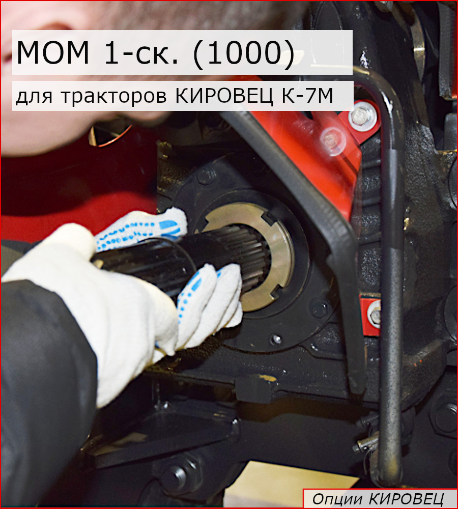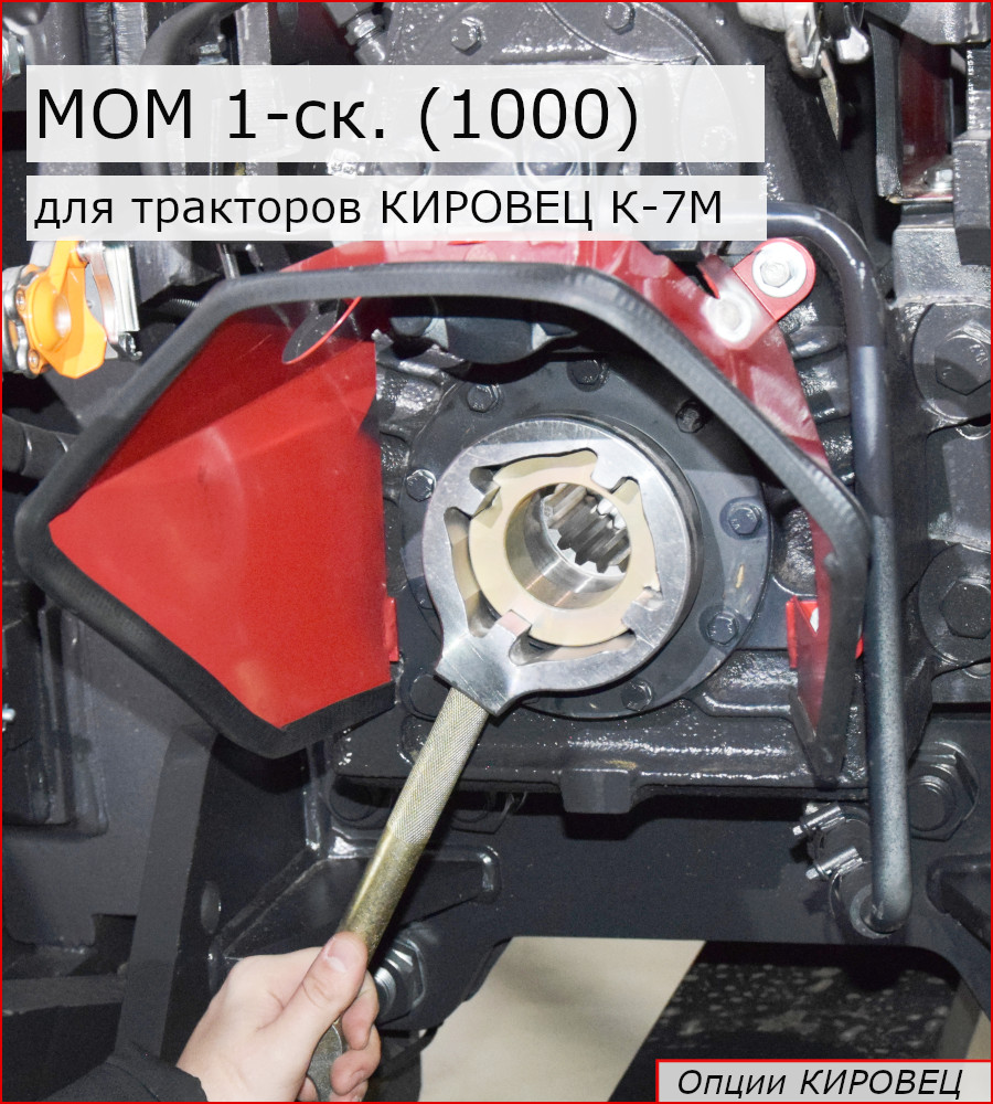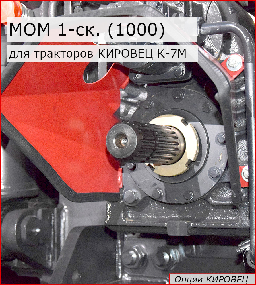 Механизм отбора мощности (МОМ) задний односкоростной - 1000 об/мин. Независимый с клапаном плавного пуска. Сменный хвостовик. Для тракторов К-7М. В состав МОМ входит хвостовик тип 3 по ГОСТ-3480. Дополнительные хвостовики можно приобрести в составе опции «Комплект хвостовиков» или по отдельности.