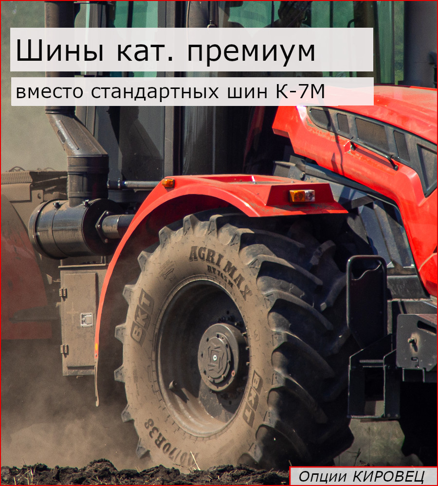 Комплект колес (4 шт.) с шинами категории "премиум" 710/70R38 (BKT, ATG или Petlas) взамен стандартных колёс. Для тракторов К-7М с отечественными шинами (Титан, Белшина или аналог).