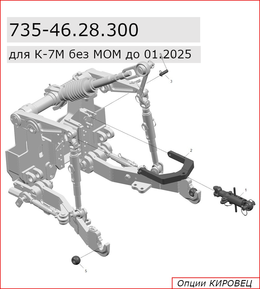 735-46.28.300 – для тракторов К-7М выпущенных до 01.01.2025, не подходит для тракторов с МОМ 2ск, есть ограничения при использовании с МОМ 1ск (см. техническую документацию)
